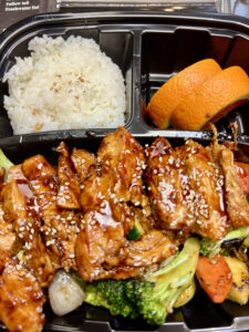 Grilled chicken glazed with a sweet and savory teriyaki sauce on steamed rice